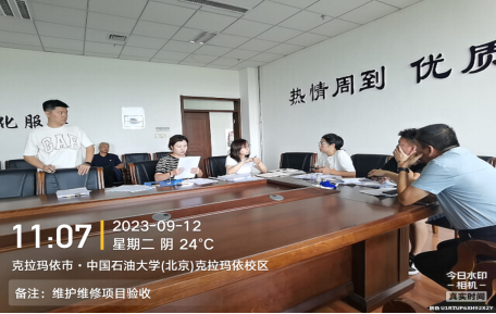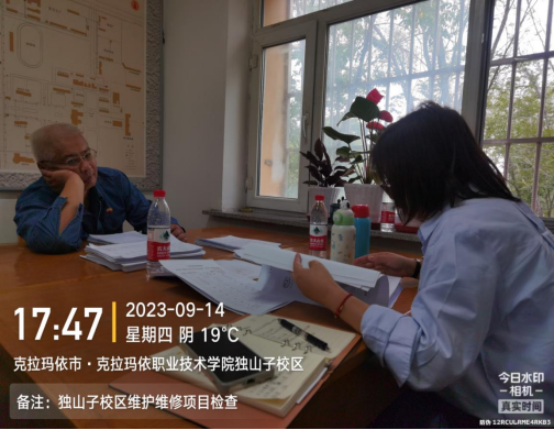 2023年9月12日-15日,我处接到后勤管理处“关于克拉玛依职业技术学院后勤管理处邀请各部门联合验收学院已完工维修(护)项目的函”,在后勤管理处的组织下,与各使用单位对我院克拉玛依校区、独山子校区暑期维修维护项目进行资料及现场质量的检查验收。